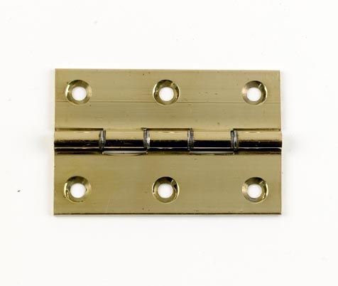 A solid brass butt hinge, finished in a clear polished lacquer. The brass is approx. 2mm thick.