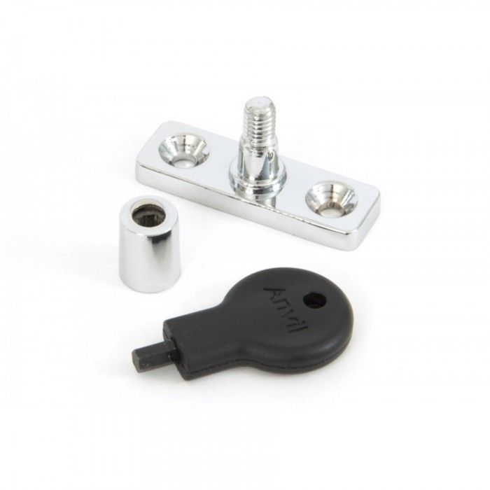Also available in a polished chrome finish this locking stay pin comes complete with screws and key. Suitable for use with any window stay, simply replace a regular stay with the locking version to add security to your window fastenings.