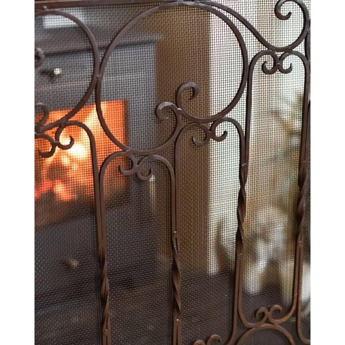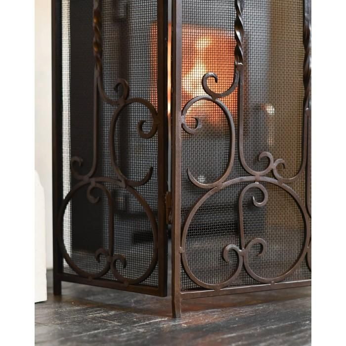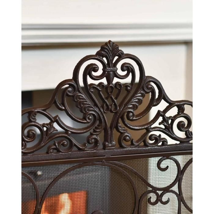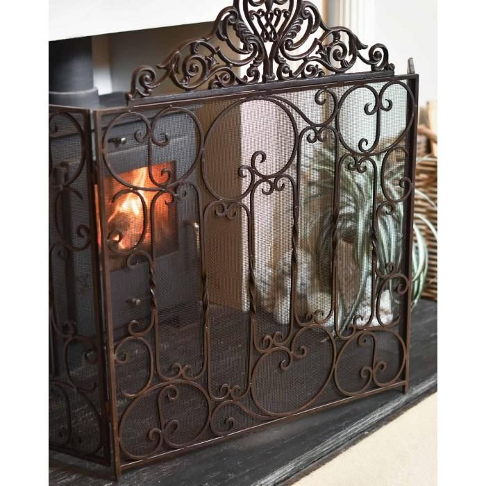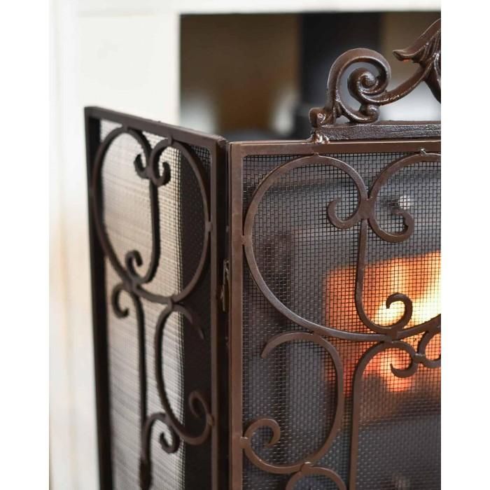 Delightful in detail and design, this ornate fire guard has an enchanting filigree finial whilst the main body of the guard has classic scroll work and heart-inspired adornments. As much as this fire guard is a decorative and stylish statement piece, its functionality is second to none. The three-fold design allows full coverage around the fireplace and the mesh netting keeps sparks and flying embers from damaging your nearby surroundings. Made from wrought iron and finished in a deep bronze colour, the traditional appearance of this fire screen is perfect for those who enjoy the look of more elegant products.