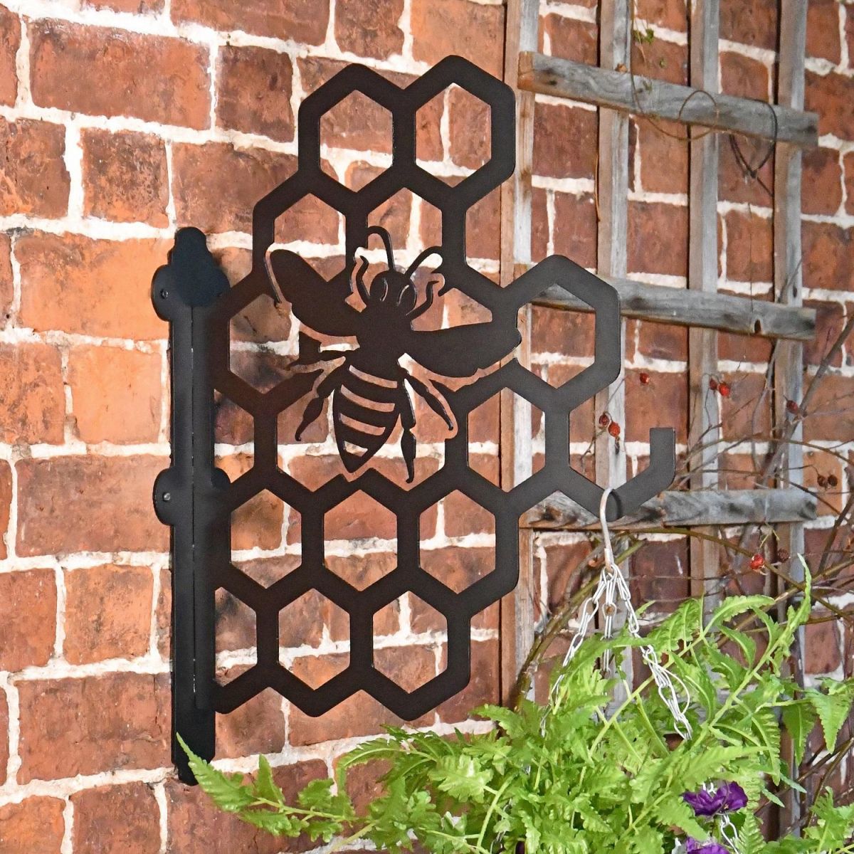 Crafted and designed by our in-house creative team, this quirky hanging basket bracket is forged from a robust steel. Finished in a sleek midnight black to highlight each intricate detail, this bracket has been designed for wall mounting and would look ideal placed beside an entryway or exterior window. Complete with a matching backplate, pre-drilled fixing holes, and an integral basket hook for easy installation and use, simply pair this design with a hanging basket filled with seasonal blooms to add a pop of style and colour to any exterior setting.