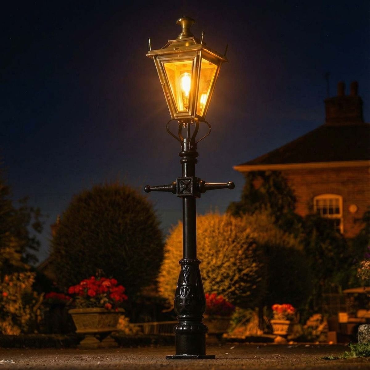 Add style and traditionalism to your home with this fantastic miniature lamp post. Crafted from high quality cast iron and finished in a sleek midnight black finish, this lamp post features an antique brass lantern with traditional corner finials. Complete with ladder bars, frog collar and cast iron base, its square mounting base features pre-drilled holes for easy installation to the desired area. A wonderful way to add functionality to entranceways, patio areas or grounds in a subtle way.