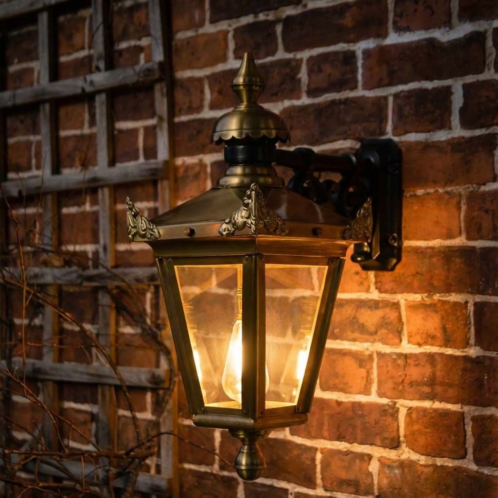 Ideal for period homes or homes which require a touch of sophistication and elegance, this wall lantern has been inspired by traditional styles found within the Victorian period. Expertly crafted from antique brass, this heavy duty wall light will not only provide style but will provide functionality to doorsteps, entranceways and exterior settings. Complete with four detailed corner finials, a scalloped edging lantern top with pointed finial, whilst the bottom finial is rounded for style and safety. Complete with a scroll mounting bracket, it makes for easy installation to any desired wall.