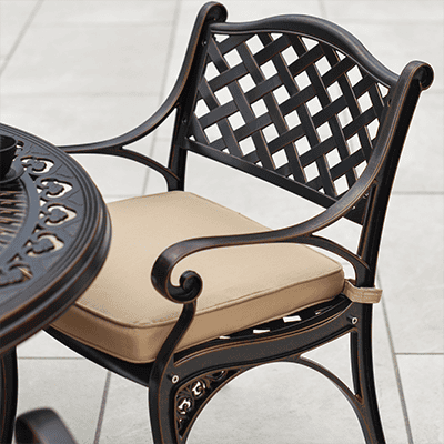 Crafted using high-quality, robust aluminium, this single chair is complete in an antique copper finish. A perfect item in both isolation and in collaboration with our other items from this set. Bring your outdoor garden area to life with this stunning design, which features a stunning lattice design on both the back support and the base of the chair. As well as an elegant swirl pattern for the arms and legs.