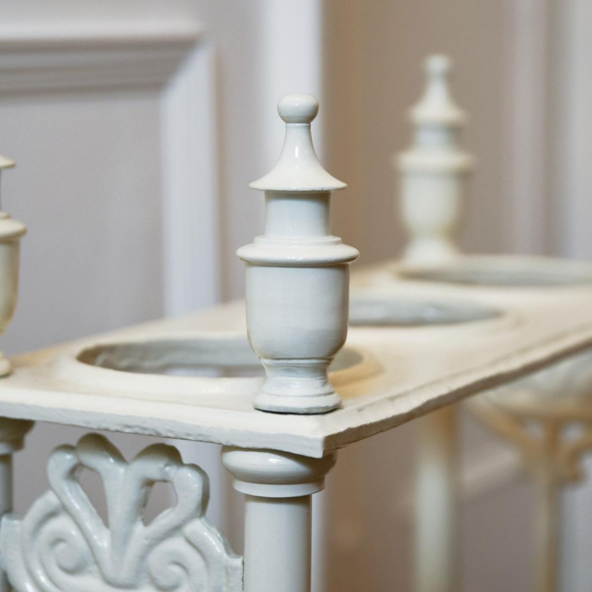 Ideal for placement in grand homes, airbnbs and hotels, this luxurious umbrella stand has been crafted from high quality cast iron and finished in an antique cream finish. Complete with four corner urn shaped finials and Victorian scrollwork throughout, this umbrella holder will certainly elevate any home hallway or utility room. Complete with three integrated circular openings, this stand will allow numerous umbrellas and walking sticks to remain upright when not in use.