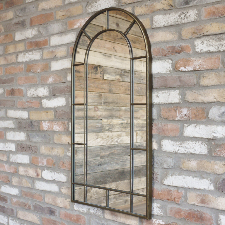 Crafted from high quality robust steel and finished in an antique gold finish, this arched window like mirror is the perfect accessory for any home. With an outer metal frame, this mirror would look perfect on staircases, in hallways or in living spaces. Designed to be wall mounted, this mirror and its modern coloured finish will complement any interior décor style and colour scheme.
