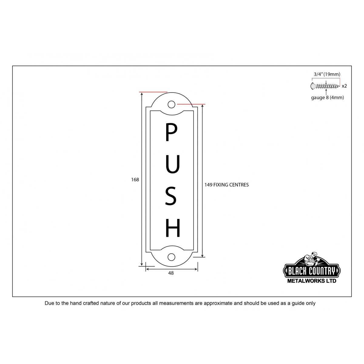 Impressively cast from solid brass with an antique pewter finish applied for a naturally aged look. The backplate has a cross-hatched design, providing a tactile feel. This rustic sign is also available in a 'pull' version and would particularly suit commercial properties with a vintage theme.