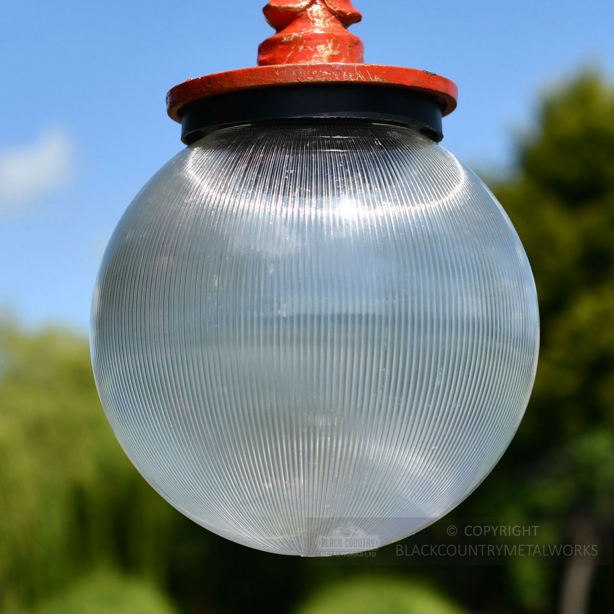 Rustic Red Ornate Cast Iron Globe Lamp Post Scale Shot