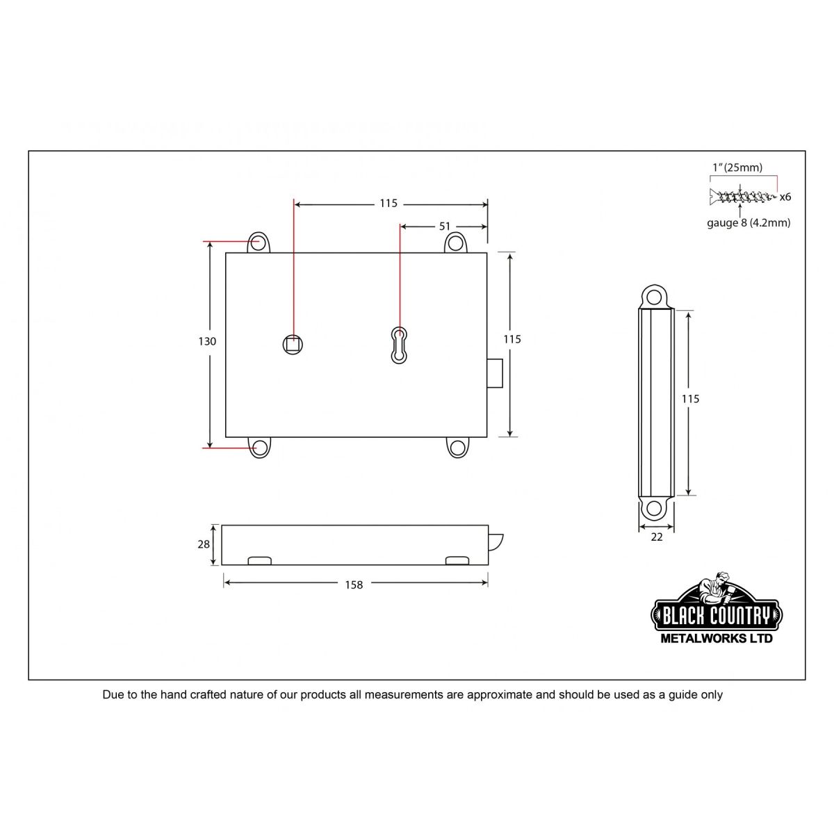 Reversible and can be fitted to left or right hand doors. A sturdy cast iron rim lock available in three distinctive finishes to suit your project. The varied hues available are especially suited to natural wood doors. The set comes without rim knobs which can be purchases separately here.