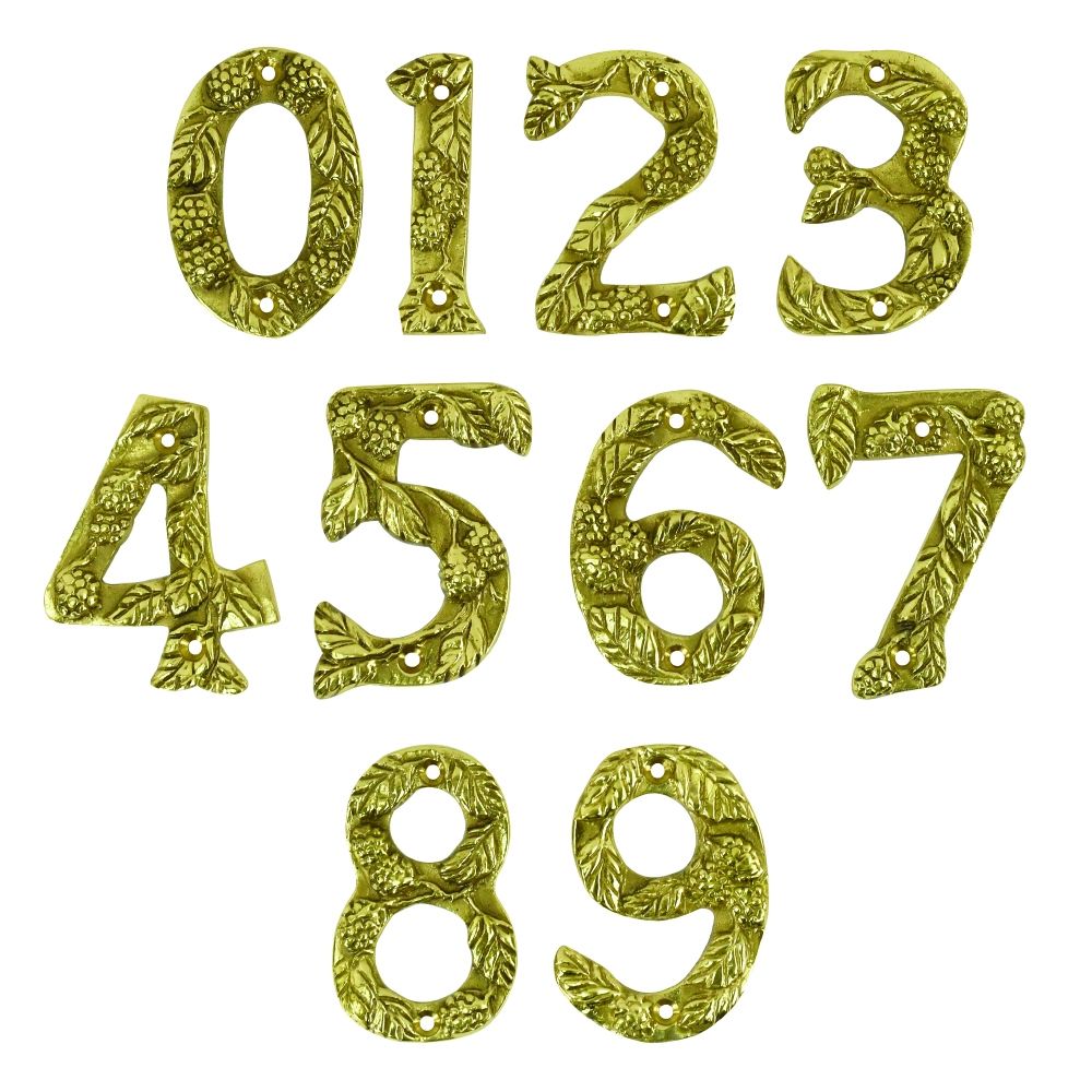 Made from solid polished brass, these numbers are adorned with a beautifully intricate leaf and berry design. A lovely way to christen a new house or spruce up an existing house sign.