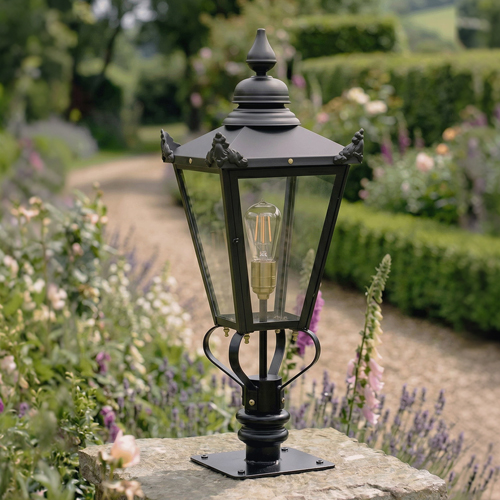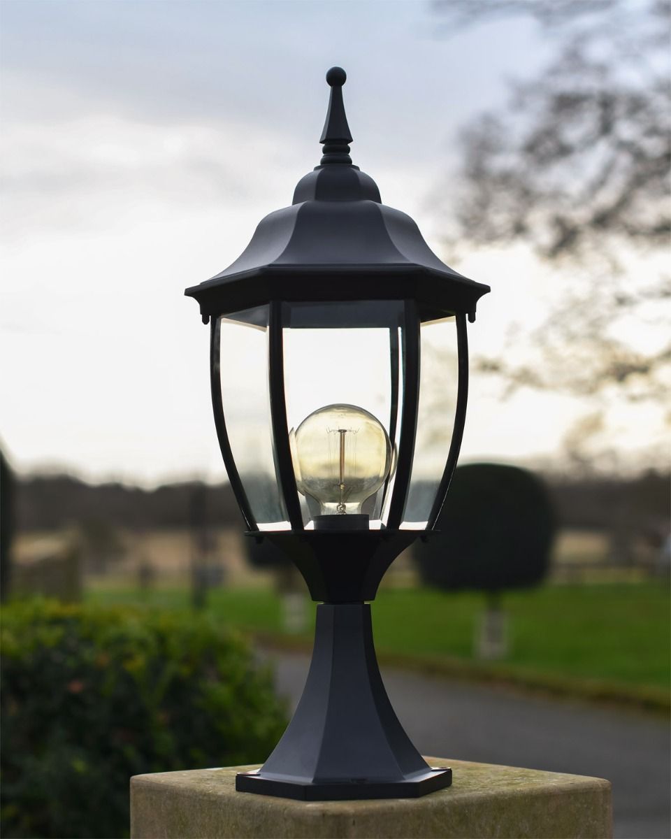 Ideal for placement along driveways or at the entrance to your home, this beautiful pillar light is a must for adding illumination during the darker moments of the day. Inspired by Victorian design, this lantern features a beautiful hexagonal-shaped design with clear glass panelling fitted throughout. Crafted from robust cast aluminium and finished in a sleek midnight black. Complete with a sturdybase with pre-drilled fixing holes for easy installation onto your desired columns, plinths or walls.