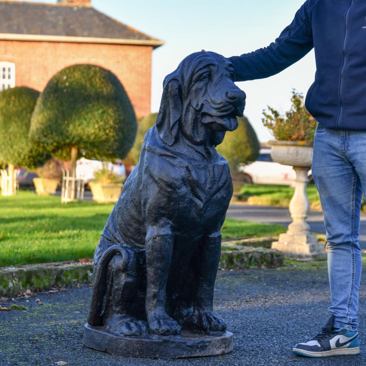 Striking in its presence, this highly detailed cast iron sculpture features that of a bloodhound, with iconic extra skin around the head and low set ears. Crafted from cast iron and finished in a single coat of black, this powerful sculpture sits upon a matching plinth for added stability when outside. Keep as a single item or pair with others to create a unique entranceway or driveway.