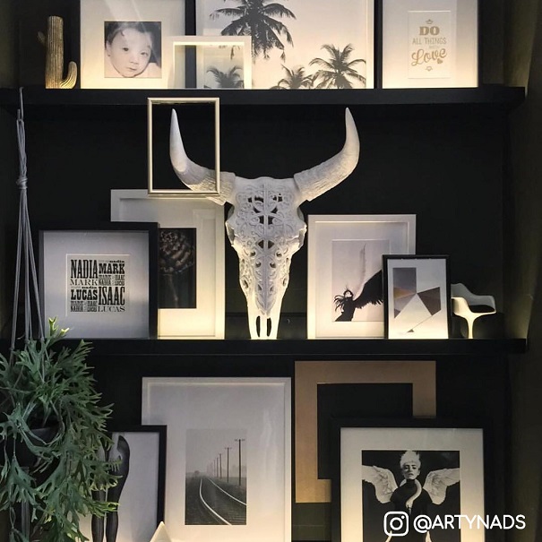 In this case, size does matter. If the wall art is too small, it will look out of place and feel as if something is missing, whereas if the wall art is too large, the wall might feel a little overcrowded. Bare in mind you don’t always have to select one piece of wall art. How about picking a unique feature point like this skull then cluster a few smaller images around it to create a fun wall gallery?