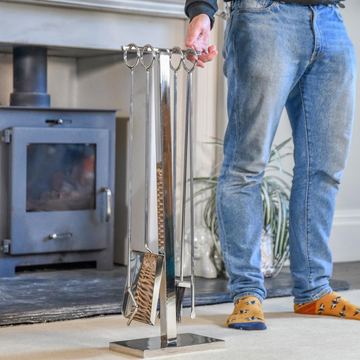 Ideal for larger fireplaces, this modern polished stainless steel companion set oozes style and functionality. Complete with four tools, including a shovel, brush, poker, and tongs, this companion set features a rectangular base for stability and support during use. Ideal for placement on fireplace surrounds and directly on hearths, this companion set will keep your fireplace clean and tidy during the cold winter months.