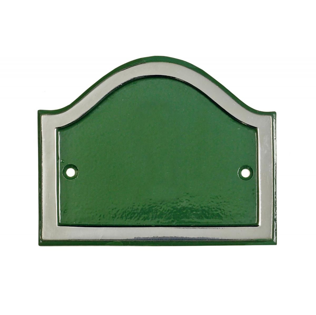 Crafted from cast aluminium and finished with a bright chrome trim, this stylish house number sign is the perfect way to add both style and practicality to any property exterior. Featuring a classic arched shape, this house sign has been hand-painted in a rich green and would look perfect contrasted against any wall or garden fence. Complete with two pre-drilled fixing holes for easy installation.