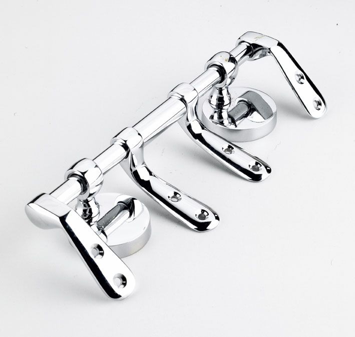 This Standard design bar hinge comes in a bright chrome finish complete with bar and round base plates.