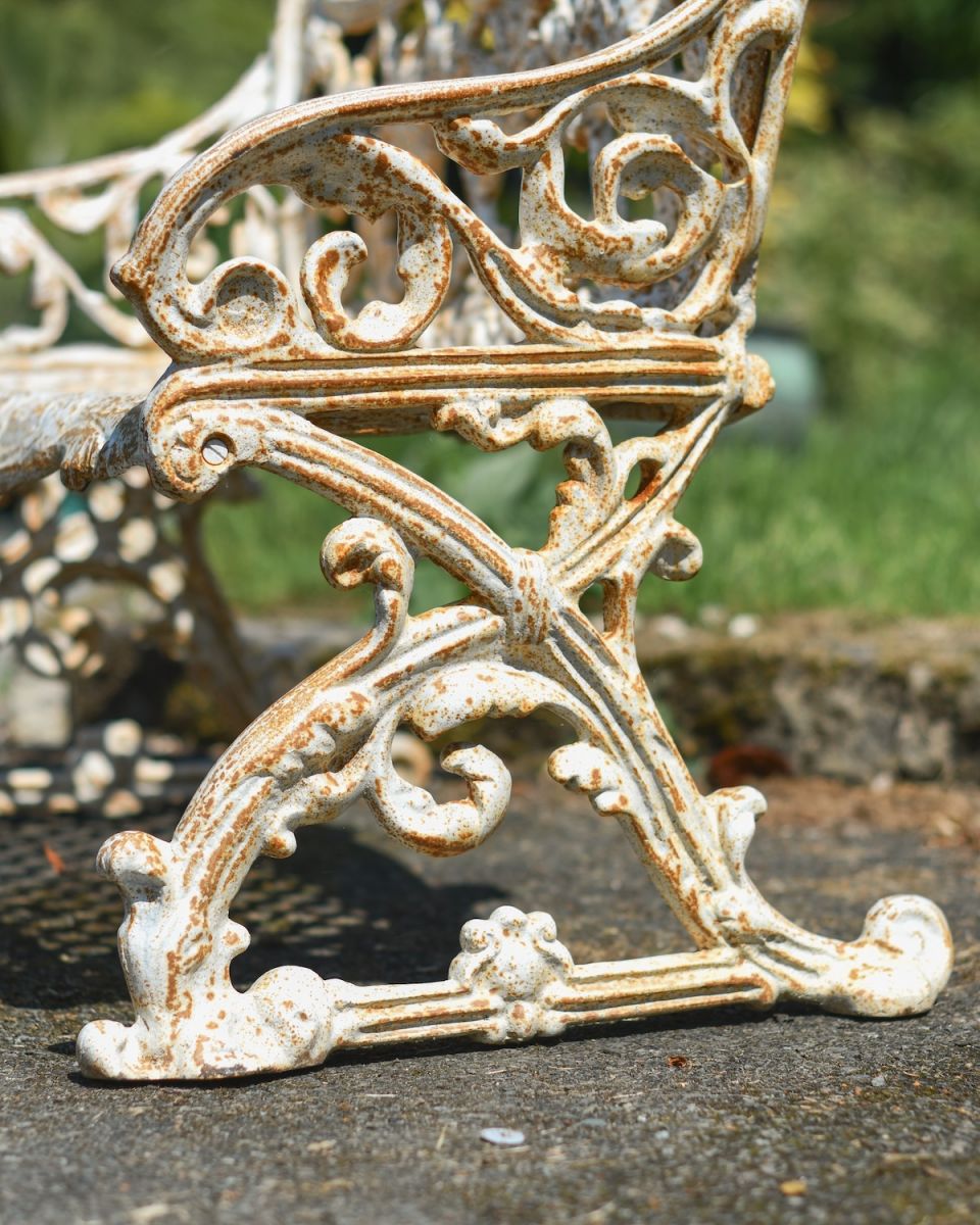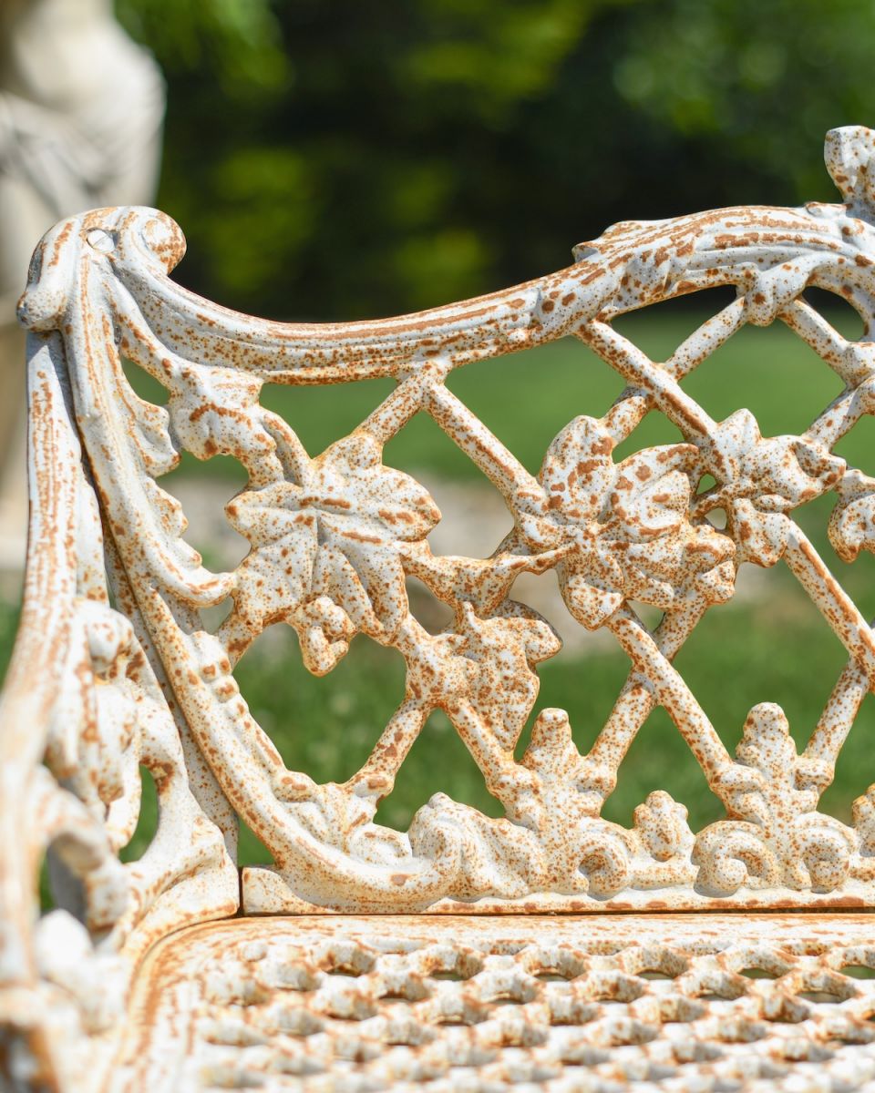 Crafted from high quality cast iron and complete with a rustic champagne finish, this gorgeous two seater garden bench is the perfect accessory for those who want to add style and relaxation to their space. The ornate backrest features leaf detailings, along with lattice design for comfort. The supportive seat is joined by equally ornate arm rests, and the four legs can be placed on grass, patios or concrete.