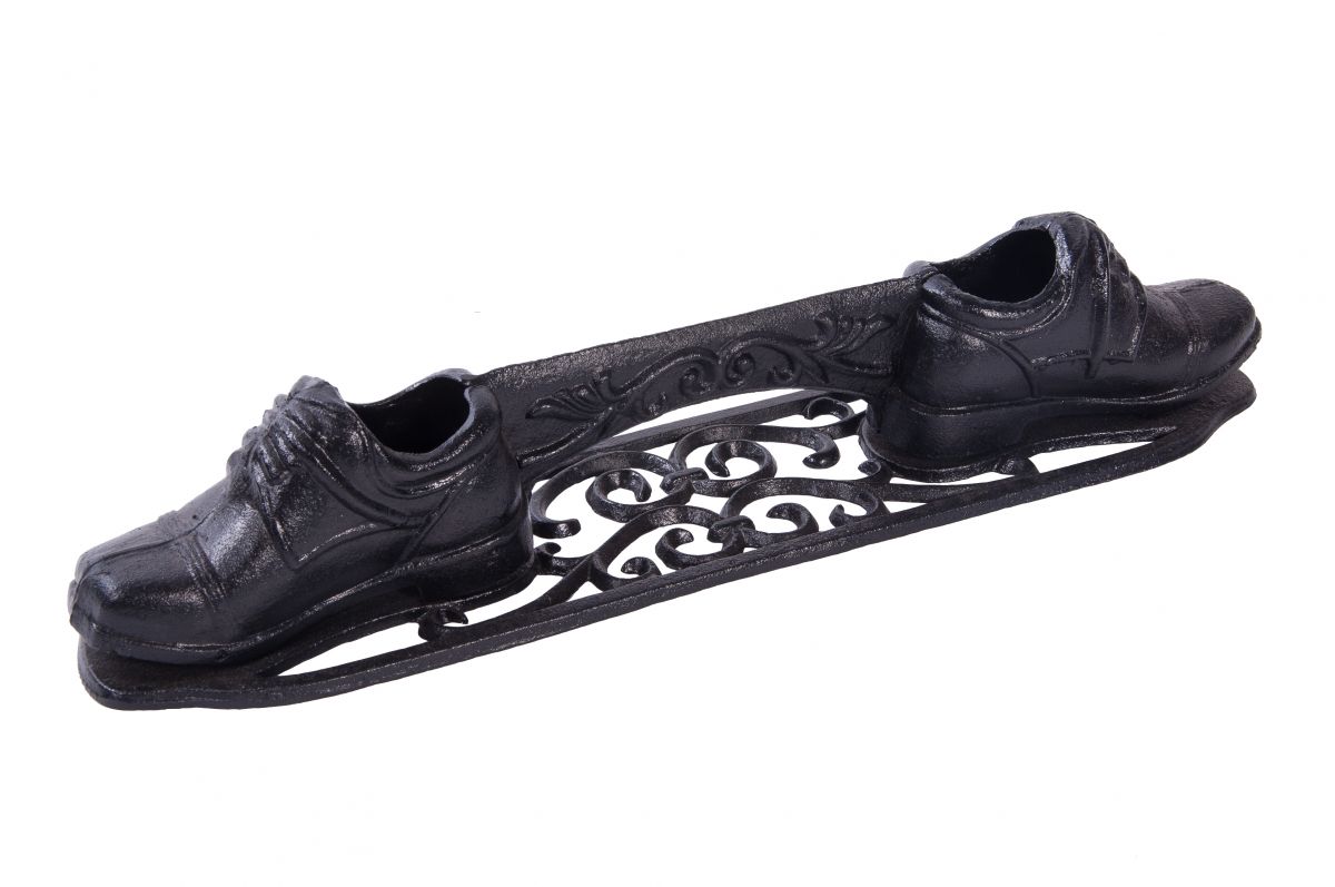 Delightfully simple in design this boot scraper is perfectly framed by a pair of classical shoes. With an ornate flat base the cast iron boot scraper can be placed anywhere, outside your garden door or gate, perfect for cleaning muddy wellies before coming in to the house. The shoe decorations are wonderfully ornate, featuring traditional detailing right down to the laces.