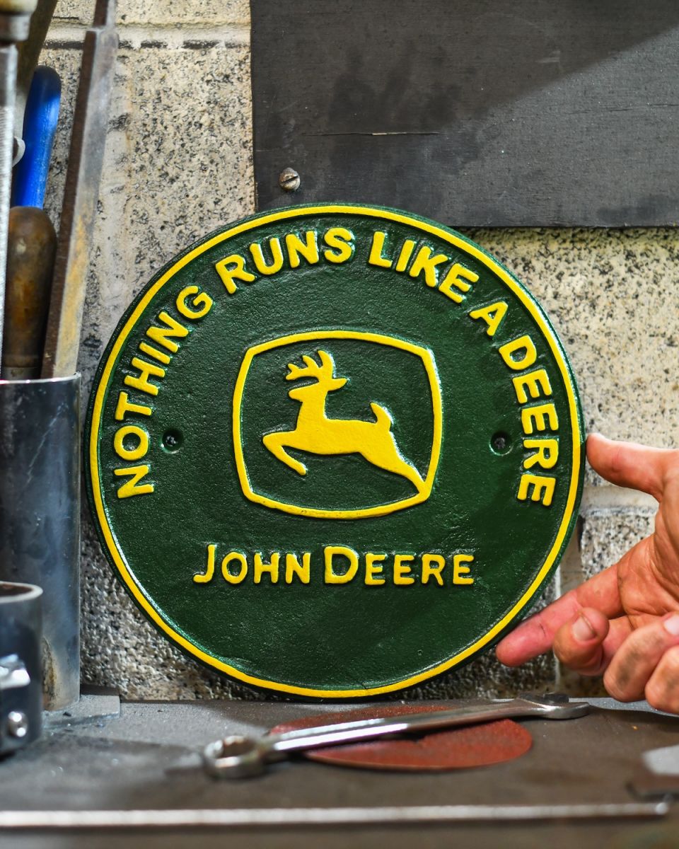 Crafted from durable cast iron and handpainted in the iconic green and yellow, our John Deere wall sign is sure to delight any agriculture enthusiast. Complete with pre-drilled holes, the installation couldn't be easier!