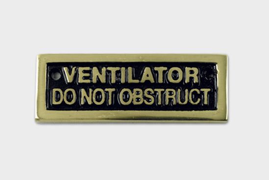 A solid brass cast sign with "Ventilator do not obstruct" cast into it.