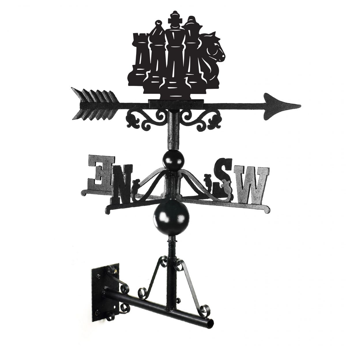 For all those chess enthusiasts in your life, this weathervane makes for a wonderfully unique and charming gift choice. Complete with a silhouette topper of five chess pieces, this weathervane subtly displays the popular game whilst remaining traditional in its design. This weathervane has been handmade from quality cast iron and finished in a sleek midnight black. Complete with directional arms, multi-way mounting bracket that can be fitted either vertically or horizontally, and all fixings, this weathervane is ready to be fitted to any exterior wall.