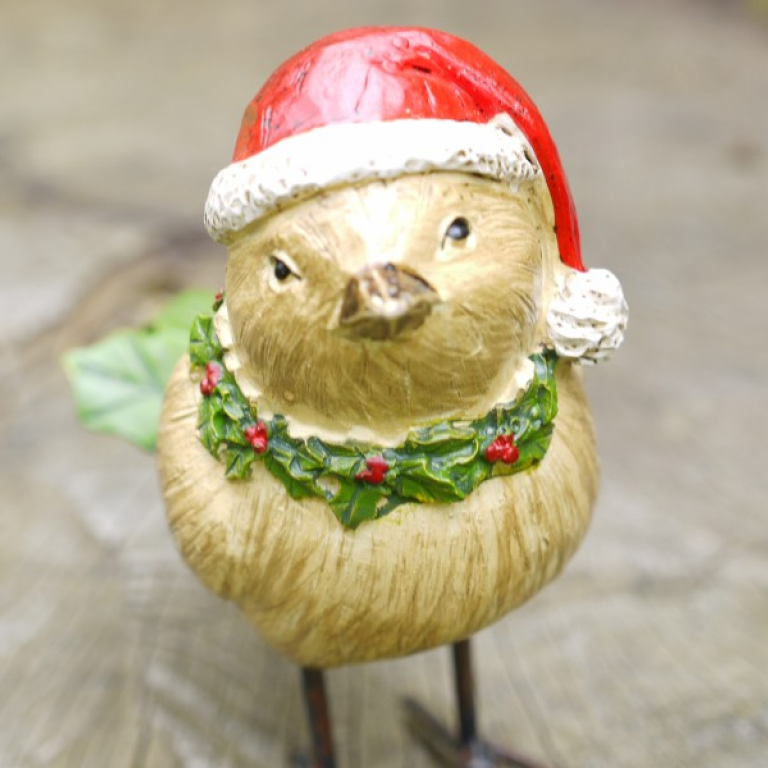 Bring your home to life with this adorable Christmas bird ornament. Featuring a Santa hat, holly and berry wreath around its neck and a holly leaf tail, this bird ornament will look idea on side tables, mantlepieces or in the centre of a Christmas table. Wherever you choose to place him, he will bring joy throughout the festive period.