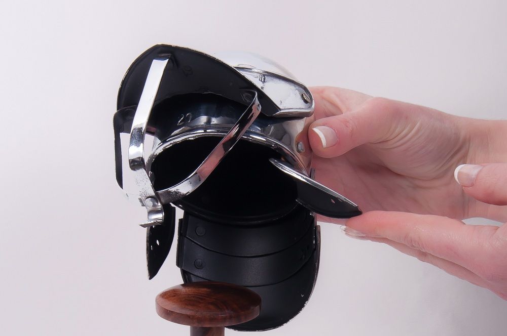 This classic helmet dates back to the 17th century and was commonly worn during the English civil war.