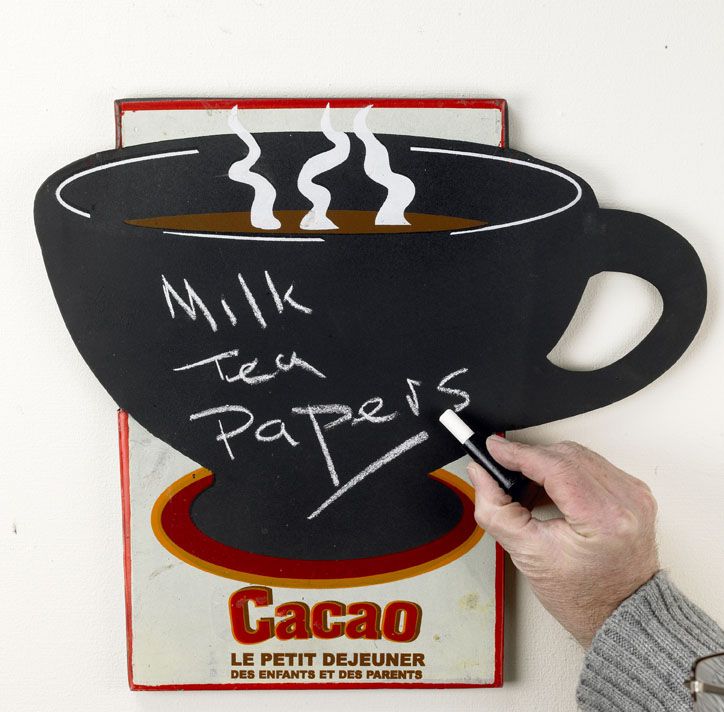 Charmingly decorative yet functional this message board is shaped like a large cup of steaming Coffee.