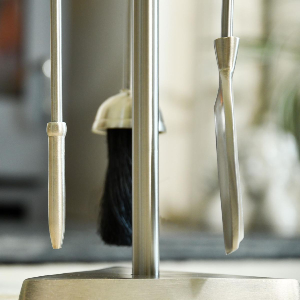 Crafted using stainless steel, this stylish companion set will add character and charm to any fireplace. Stood on a triangle base, the companion set holds a shovel, poker and brush to keep your fireplace stoked and clean throughout the winter months. Its contemporary design means that it will complement any interior design.