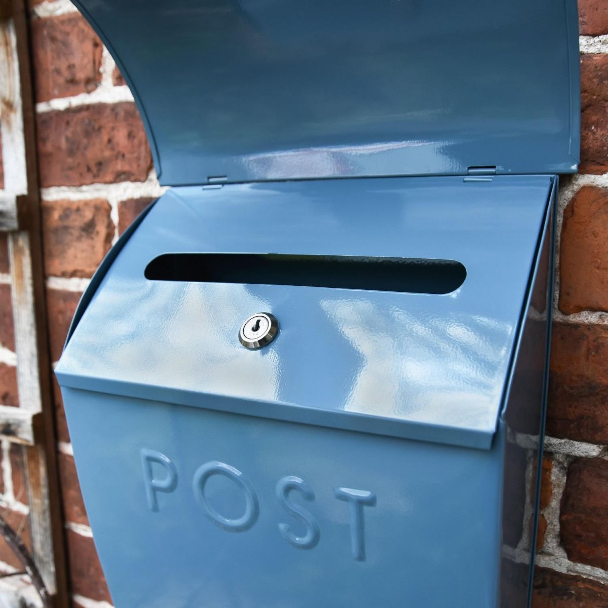Oozing contemporary style and class, this fun and quirky post box has been finished in a slate blue finish, adding colour to any exterior setting. Crafted from high quality steel, this post box has pre-drilled rear fixing holes for easy installation to any wall or column. The easy to lift lid hides the lockable aperture, allowing post to remain safe and secure within.
