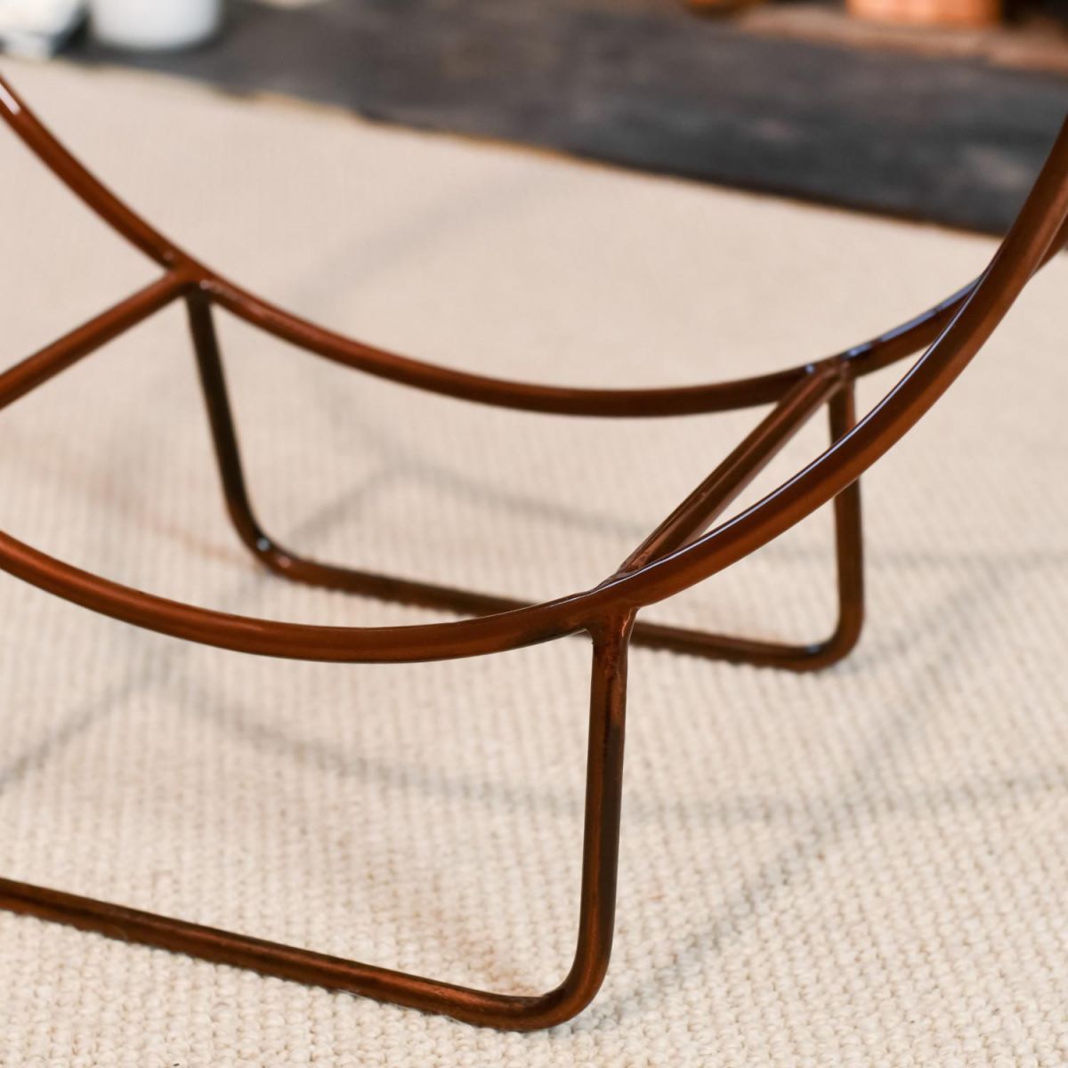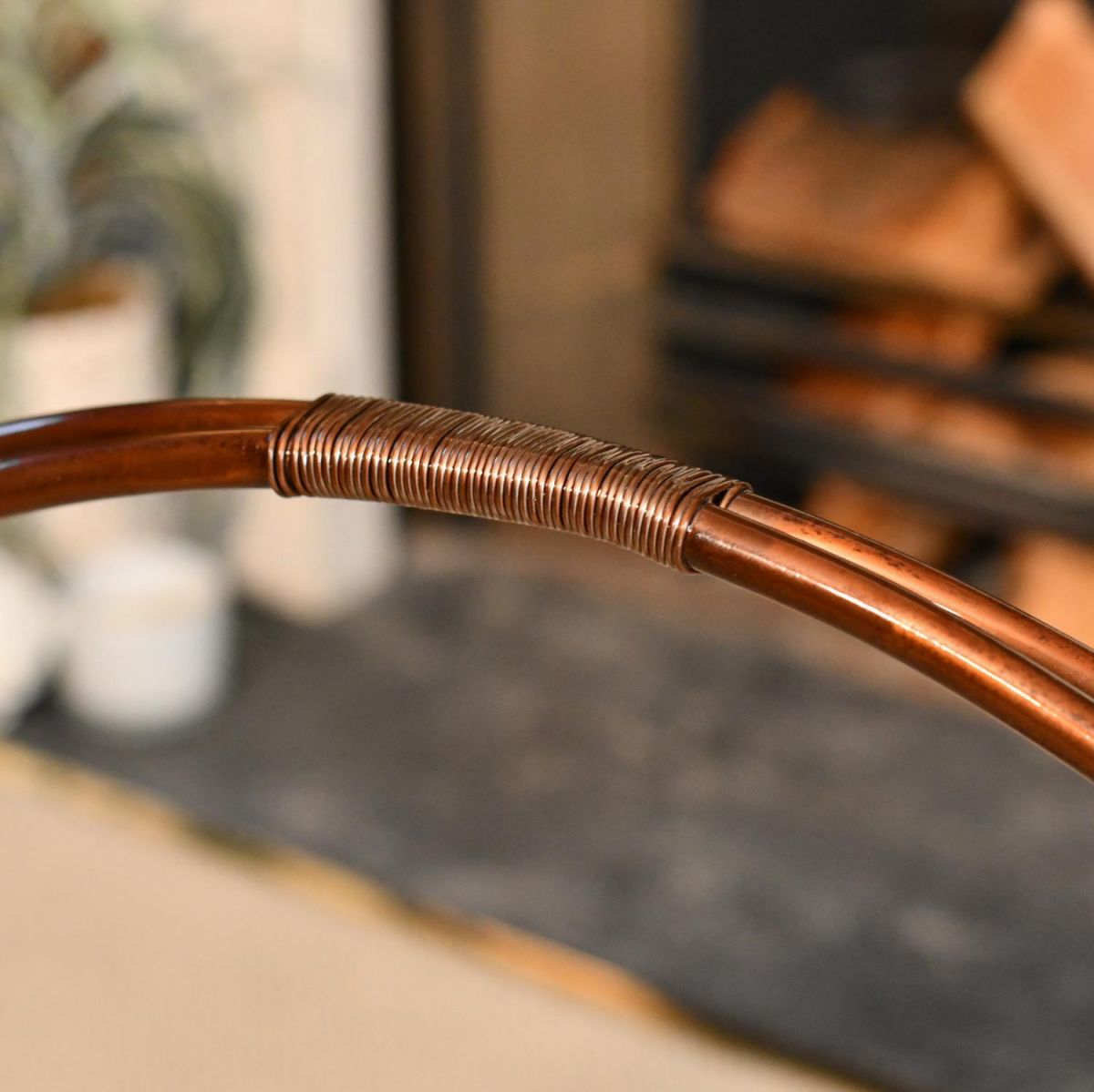 Made from steel and finished in an original copper, this circular log rack and holder comes complete with a contrasting brown handle, allowing logs to be carried with ease from location to location. Its open design means air can continue to dry out the logs before being placed on the fire. Stood on raised square legs, this log rack is the ideal fireplace surround for any modern home.