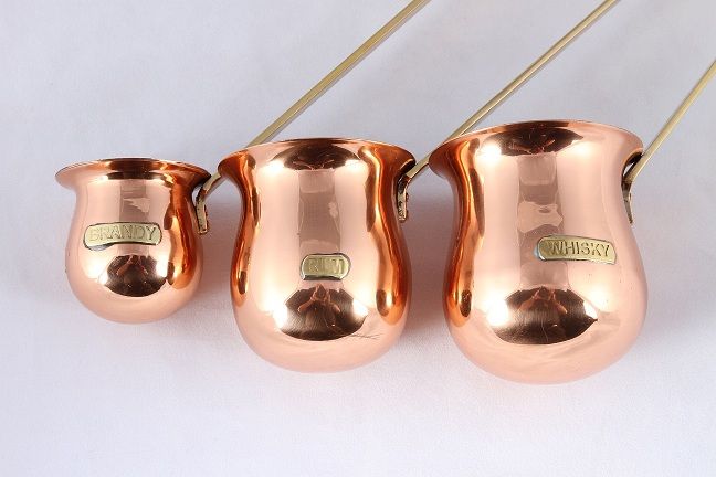 Each cup is hygienically lined with clean stainless steel, and has a long polished brass handle.