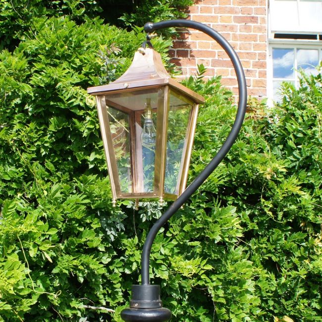 This truly iconic top-mounted design takes inspiration from the Victorian era and is entirely unique to us. Carefully constructed from pure copper sheeting, this lantern has been expertly hand-polished and finished with a tough stove lacquer for beautiful, lasting quality. With its heavy-duty construction and charming finish, this lantern is absolutely ideal for illuminating your entryways. Complete with a cast scrolled bracket and embossed corner finials, this ornately detailed lantern is bound to add a touch of unrivalled traditional style to your premises.