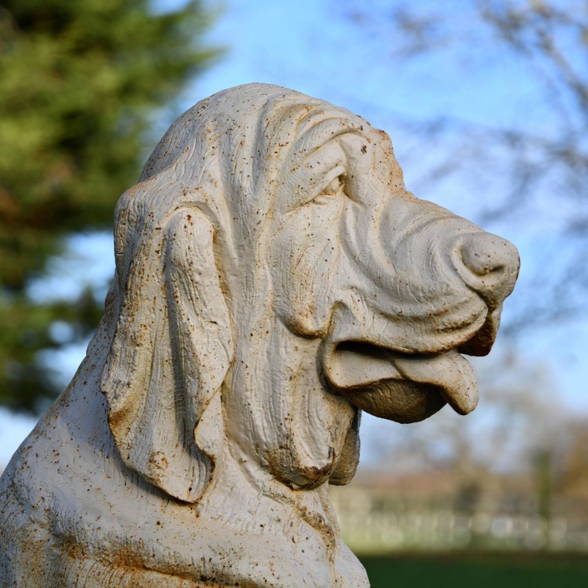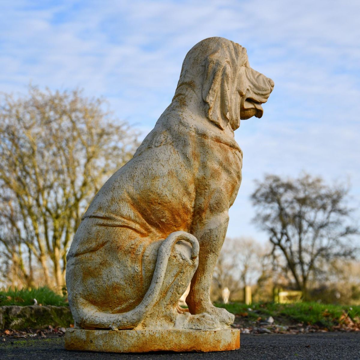 Crafted from cast iron and finished in a single coated cream finish, this fantastic and powerful sculpture features a sitting bloodhound. Highly detailed throughout the face and body, with the recognisable extra skin and low set ears, this sculpture sits on a further matching plinth to added stability. Ideal for placement at entranceways or driveways, this sculpture is a demanding presence in any garden setting. A wonderful addition for those who have this breed of dogs or who simply want to have a guard dog on duty, without the mess.