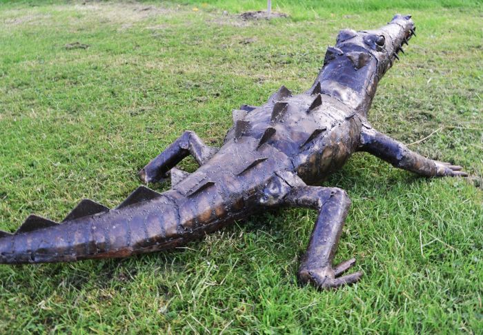 This fearsome crocodile sculpture perfectly captures the iconic and deadly animal in its youth. Wonderfully petite the young garden decoration has been created by hand from patchwork wrought iron. The crocodile ornament is a beautifully deep bronze in colour and is effortlessly authentic, from each menacing tooth to the individual scales of his back.