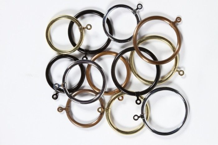Plain Brass Curtain Rings. These polished brass curtain rings come with a ring eye fixed to them and are available in a variety of sizes.