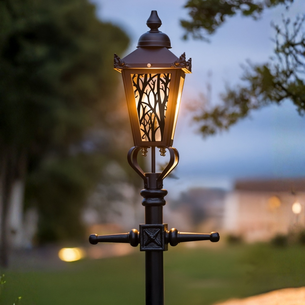 Custom Stag Head Design Victorian Garden Lamp Post Positioned in a Town Park