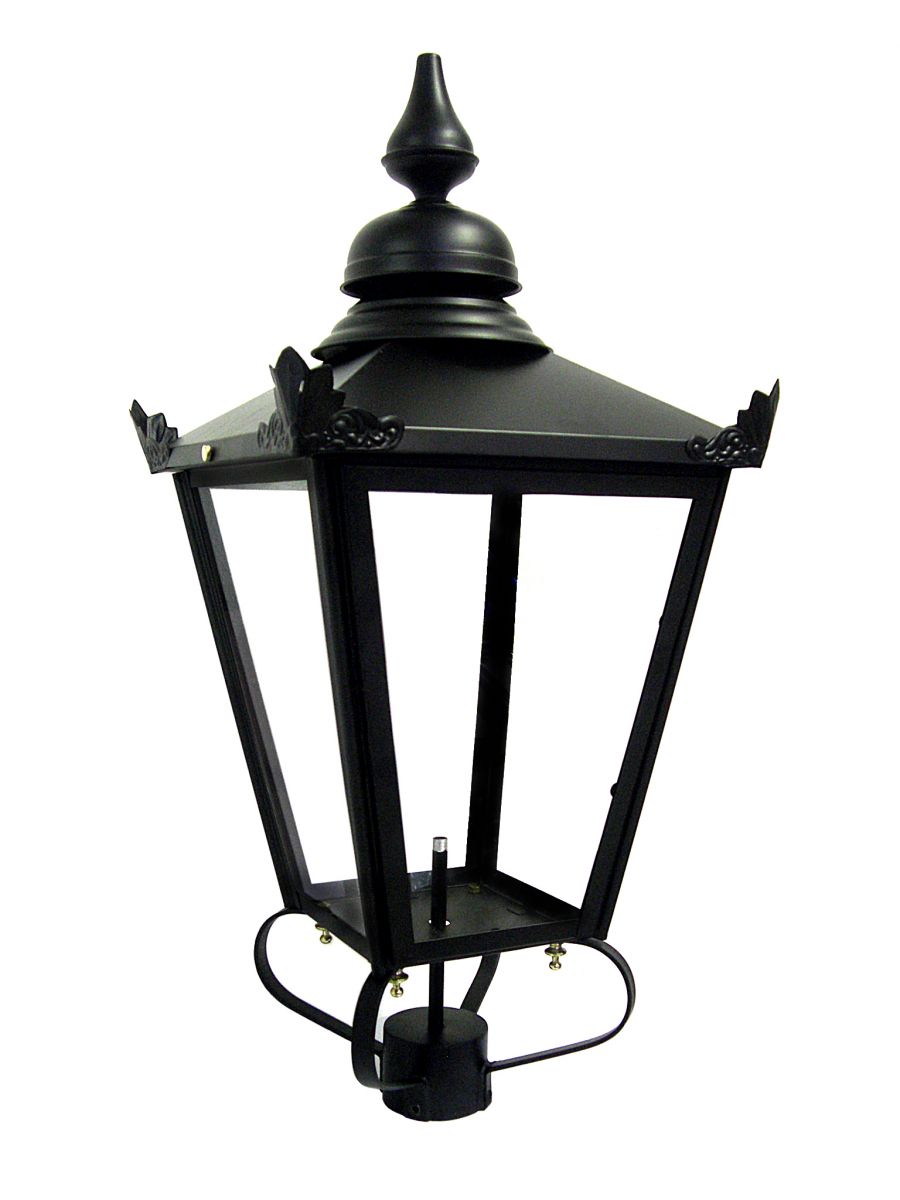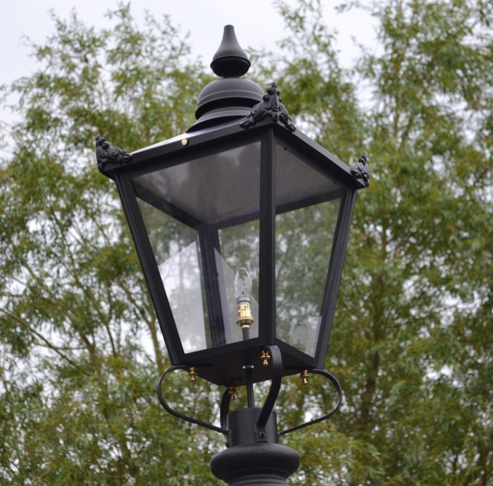 Our large Victorian lanterns in copper and satin black are available with customisable frog collars. This flexibility allows fitting to your existing lamp post, ensuring that our faithfully reproduced Victorian lanterns can seamlessly replace your existing, traditional lamp post top.