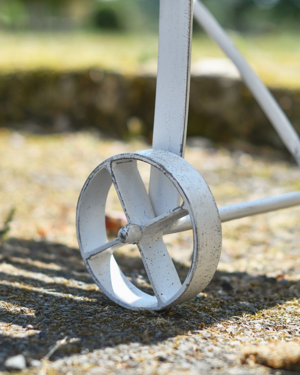 Finished in a country cream base coat, this beautiful garden bench is the perfect way to invite a sense of English garden charm into any outdoor setting. Handmade in galvanised wrought iron, this robust bench has been specifically designed to comfortably seat up to three people and is a lovely way to relax during the warmer months of the year. Featuring a classic slatted seat, two curved armrests and a large backrest to ensure both stability and comfort during use, this garden bench is the perfect way to relax and admire your outdoor space in style. This bench has been fitted with two wheels on one of its sides to ensure easy movement throughout your garden or grounds: perfectly placed within a garden, on a patio, or on a large porch area.