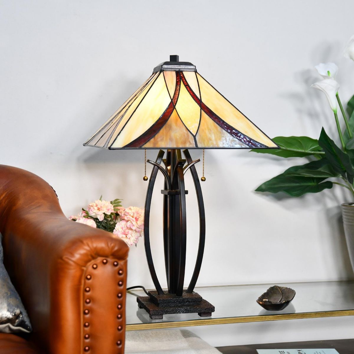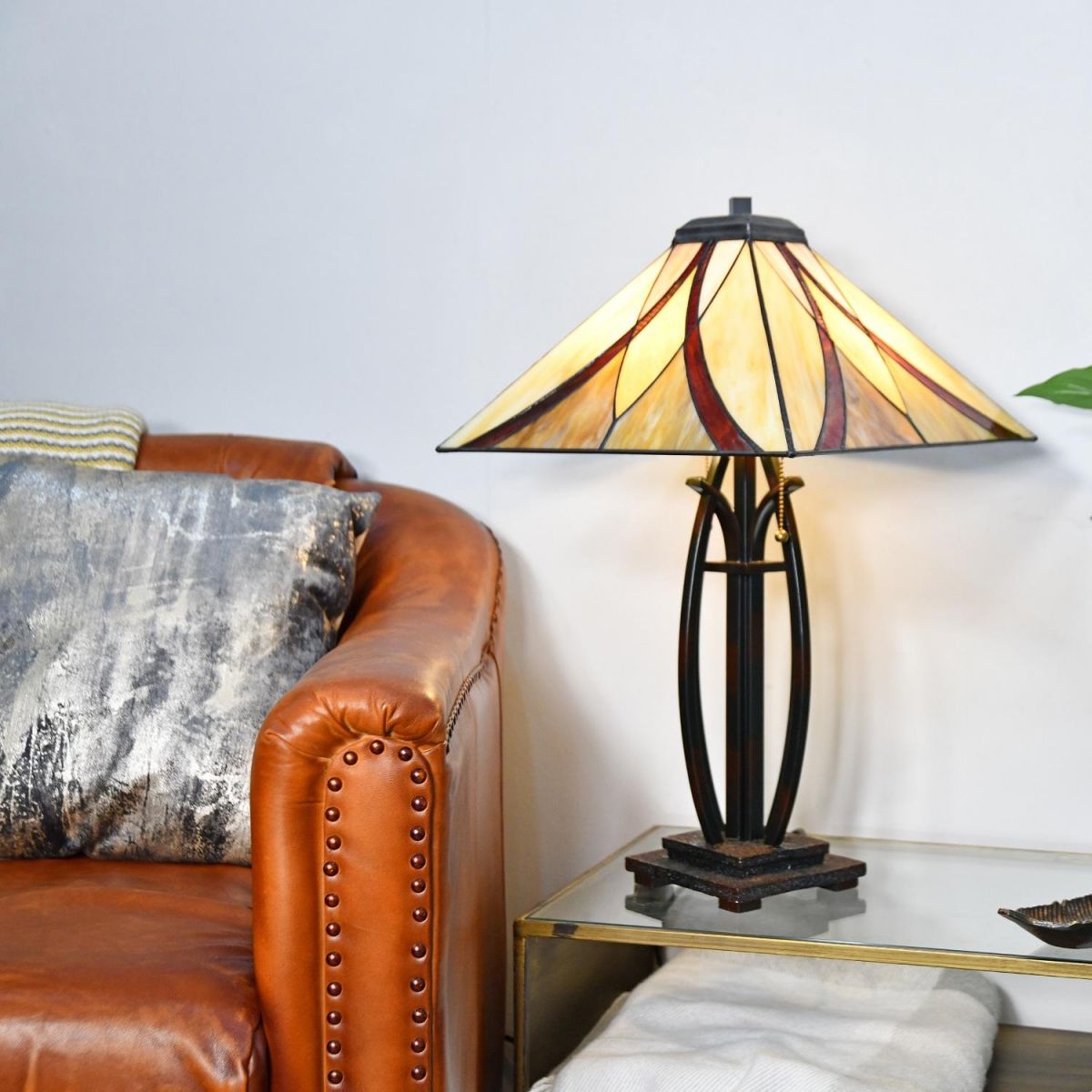 An exquisite example of an authentically crafted Tiffany lamp, this piece is a stunning addition to lounge areas and cosy corners. The exquisite glass lamp shade has been created by hand using classical methods to ensure a polished yet beautiful finish. The stand is charmingly unique in detail and has been finished in a deep bronze.