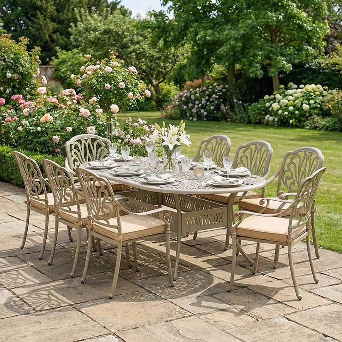 Crafted from quality aluminium and inspired by the traditional 1900s English garden sets, our deluxe “Blanche'' set is ornate, eye-catching and charming. The set includes a square table and four chairs which are complete in a stunning antique white finish. The “Blanche” set is sturdy and robust but is still easily manoeuvrable, perfect for hosting those summer garden parties.