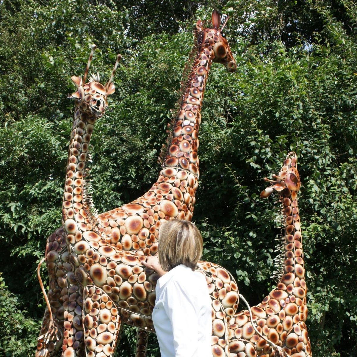Available in three different sizes, these splendid sculptures are a beautiful and lifelike representation of their wild cousins, the Giraffe. Made from fabricated and pebbled steel, each individual piece has been carefully hand finished in natural shades for that added lifelike quality. Each of the giraffe sculptures is simply striking from the tips of their eyelashes to their tail hair and will certainly add a statement to any commercial premise, home or grounds. Keep as a single item or pair with eachother and create a place of real wow factor.