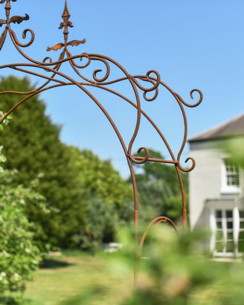 Complete with a rustic finish, this rose arch has been designed to add charm to your garden throughout all seasons of the year. This arch features a classic curved roof alongside two sturdy rectangular ‘legs’, making it ideal for placement at a garden entryway. Adorned with intricate scrollwork detailing throughout, this unique rose arch will add an instant touch of nature to any outdoor setting. Ideal for growing climbing plants, vines and roses.
