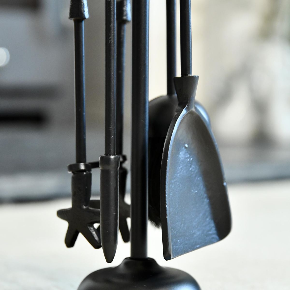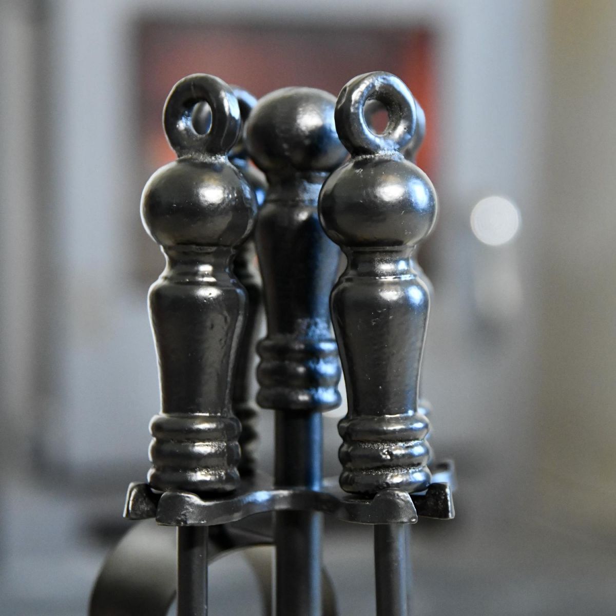 Traditionally crafted from iron and finished in a sleek black, this fireside companion set is a simple yet stylish addition to your hearth. Each fireplace tool is hand turned to create elegant detailing and fits snugly in to the matching stand. The tongs feature an integral clip to ensure storage is easy and safe. Similarly the brush has been fitted with coconut coir bristle for efficient cleaning.