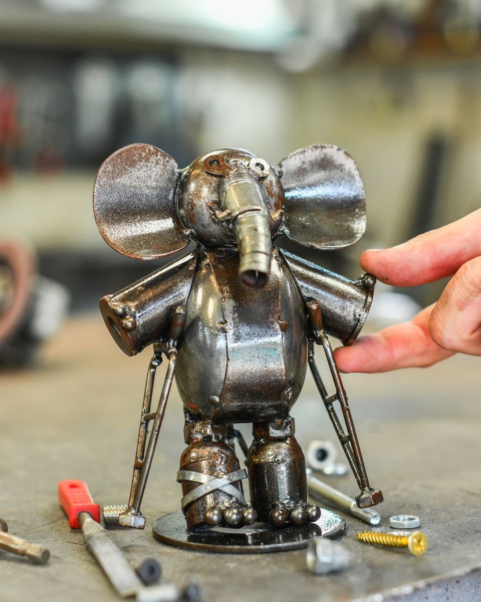 Elsie's had a few bumps and scrapes. Cleverly reimagined from recycled metal, this endearing sculpture would make the perfect no-guilt 'get well soon' gift.