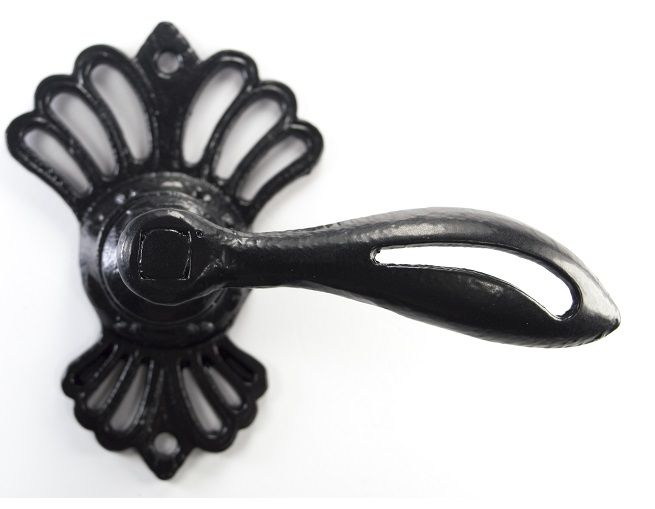 A regal addition to your door this ornate lever handle is traditionally crafted from iron. The back plate takes the form of a majestic fleur de lys embellished with stunning fret work, while the door handle extends in an elegant curve.