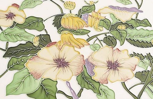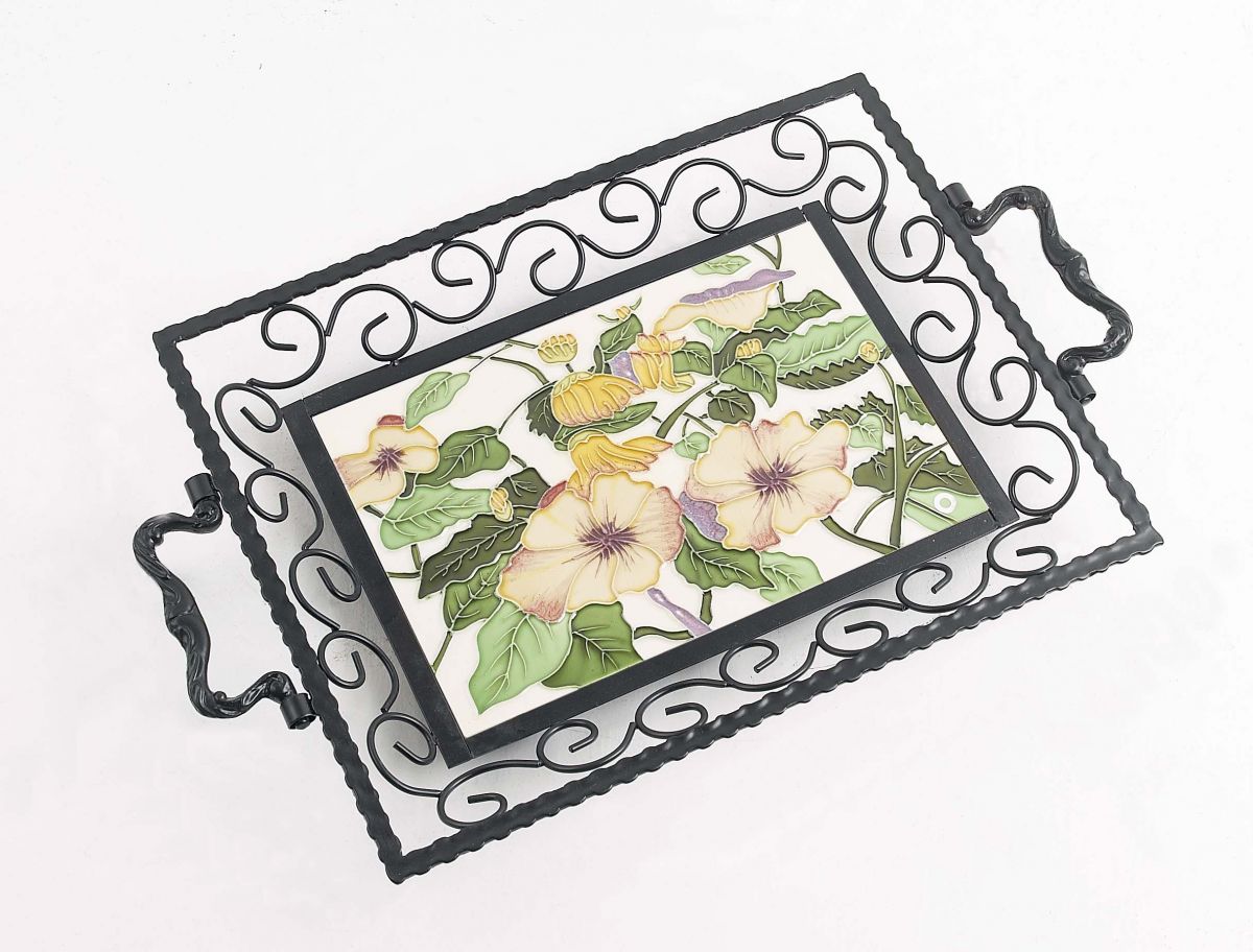 Pretty Blooms and leafy fronds adorn this enchanting floral garden tray in shades of peach, greens, palest yellow and soft lilac.