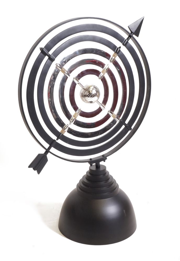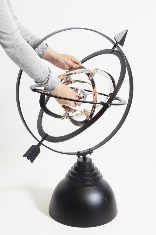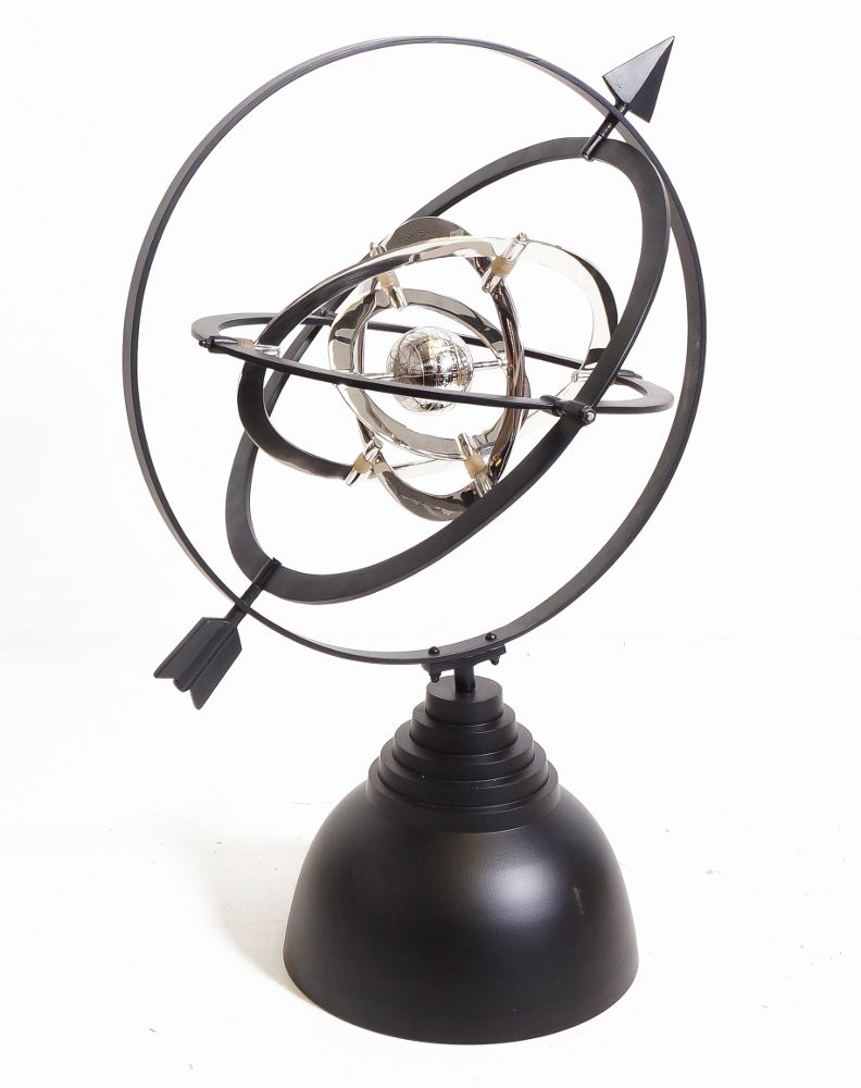 This regal and impressive armillary has been mounted on a heavy black steel base. The chrome centre lends a sense of contemporary style this classical design.