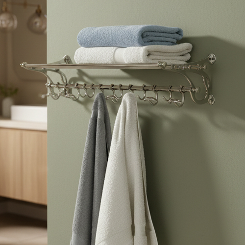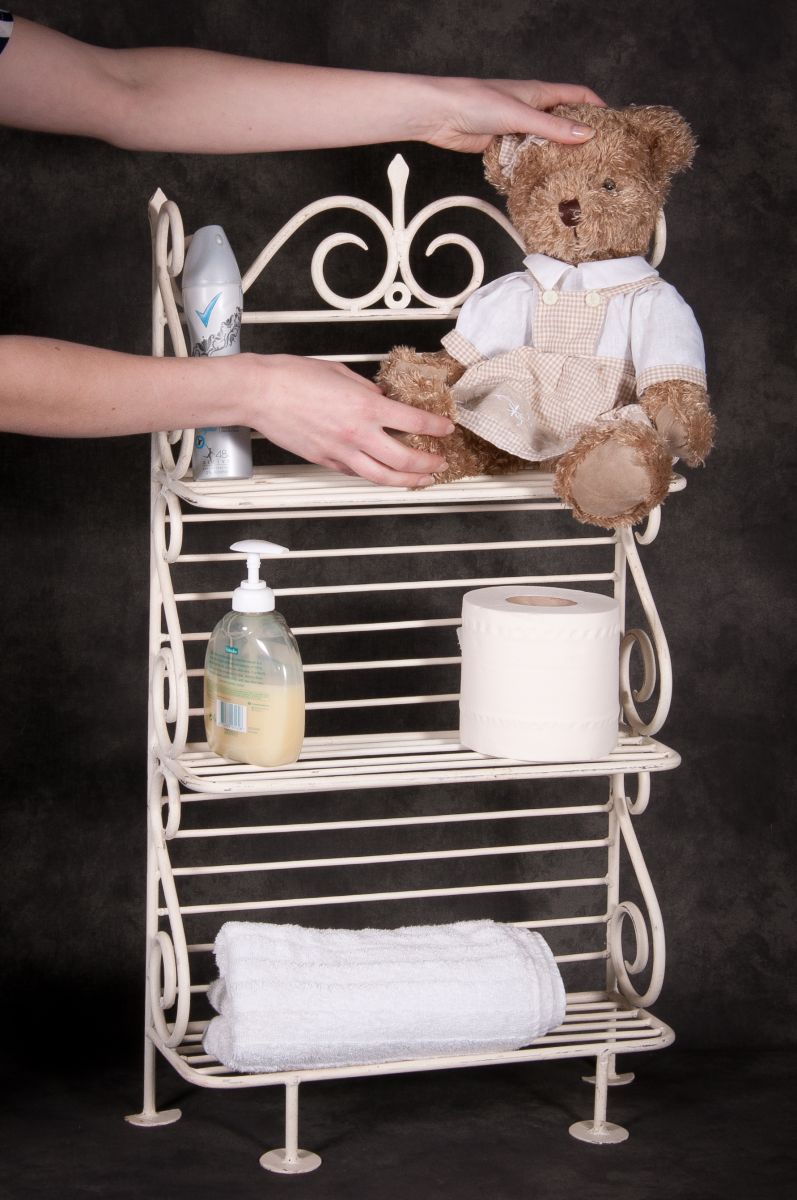 Hand made in wrought iron, and with lots of stylish scrollwork, you can use it to load all your bottles and jars, or fill with lots of soft fluffy towels.