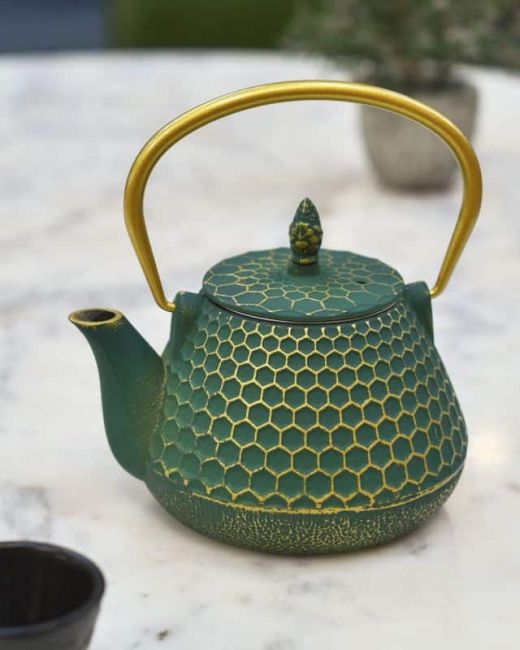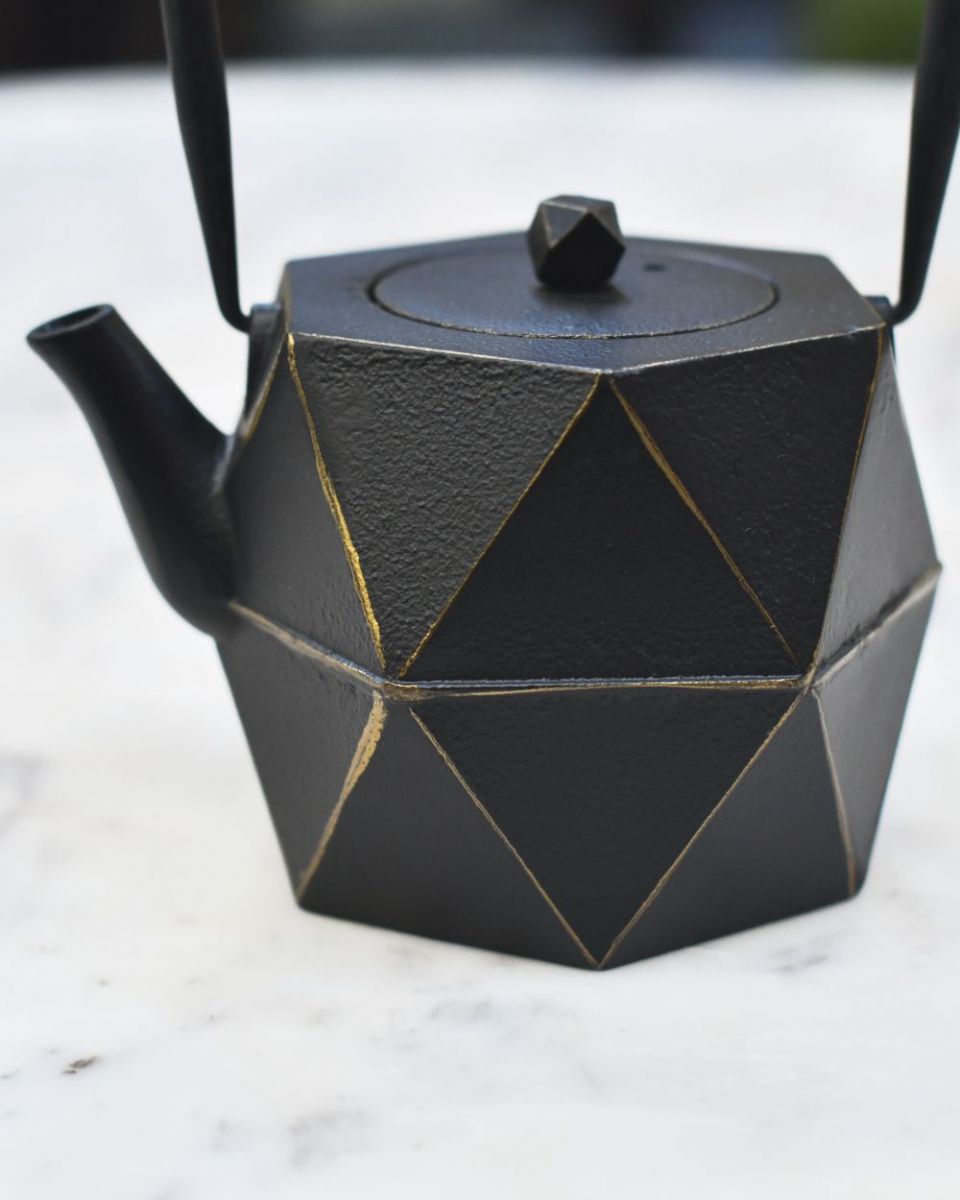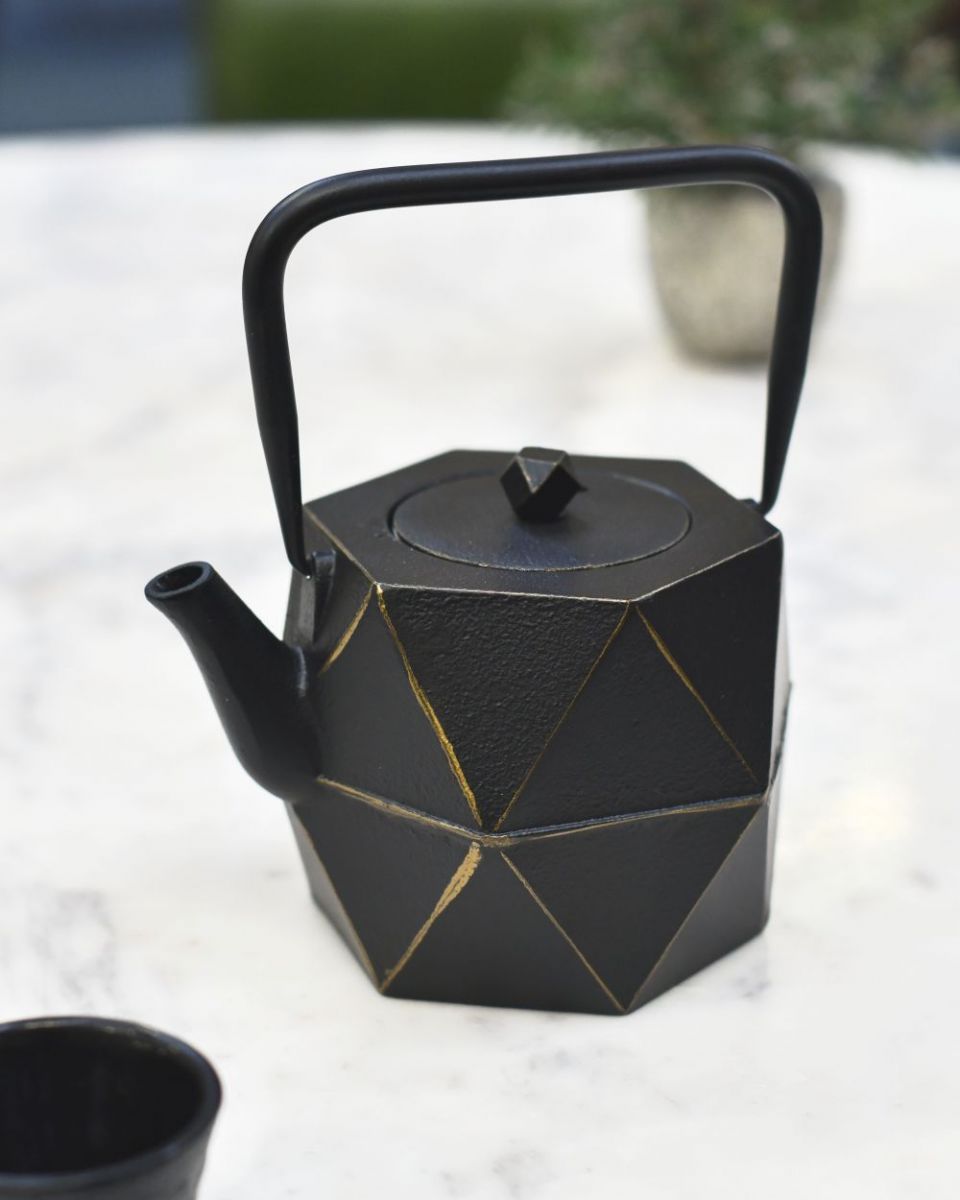 - Geometric Black and Gold Cast Iron Japanese Style Teapot
