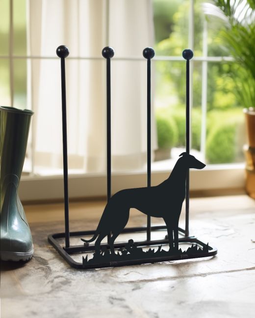 Hand-made from high-quality, robust steel by our in house creative team, this boot rack features a German Shorthair Pointer silhouette on the front of the rack. The silhouette depicts the pointer walking through grass.